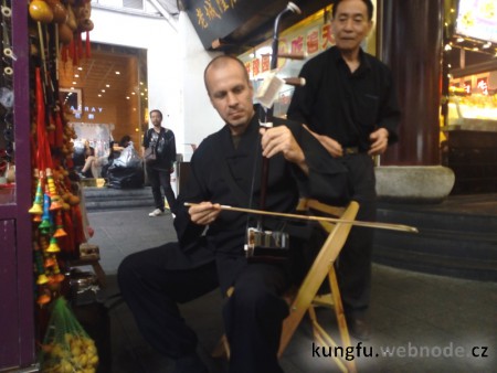 Cvičili jsme tentokrát nejen sestavy tchao-lu jako je wu-pu-čchüan nebo lien-chuan-čchüan, ale také techniky s partnerem jung-fa. Cvičení s Číňany je velice zvláštní, většinou jsou menší než vy, zato jsou mrštní, odhodlaní a mají bojovného ducha. Zkrátka "malí, ale šikovní" :-)
